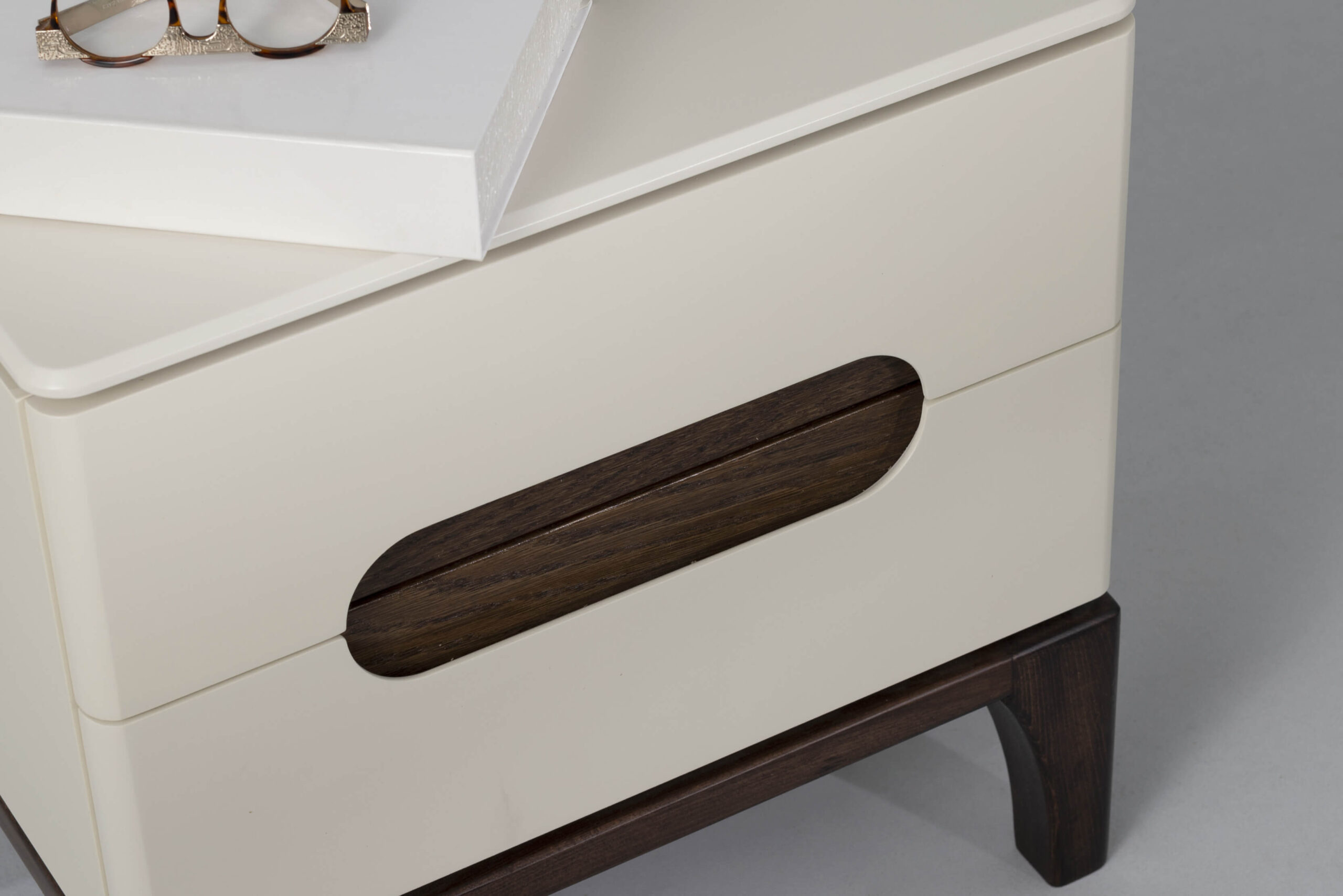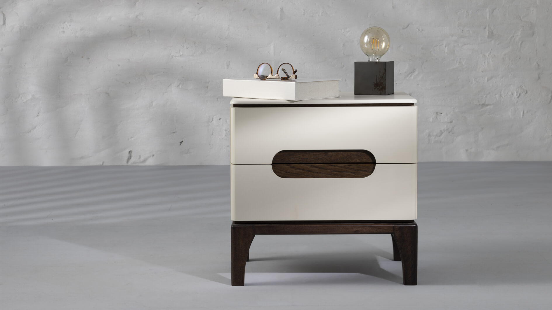 Specially designed for all lovers of retro style with gentle rounded lines, the Alora bedside table has two drawers, which are easily opened without visibly set handles.