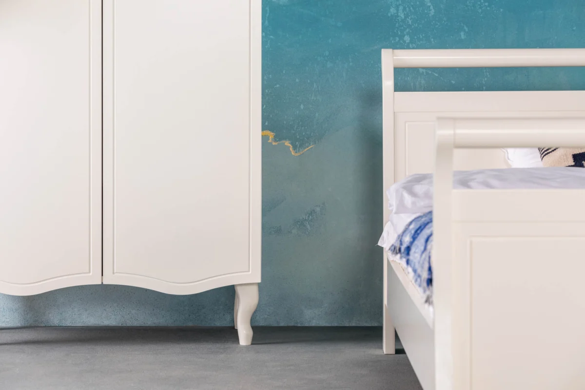 Glorija wardrobe made in ivory color is an extremely stable and long-lasting model with an unusual leg design.
