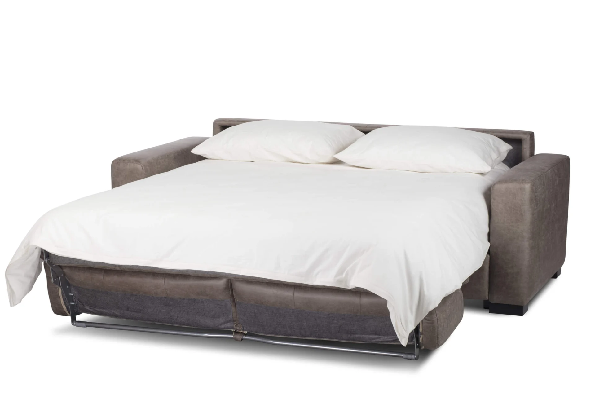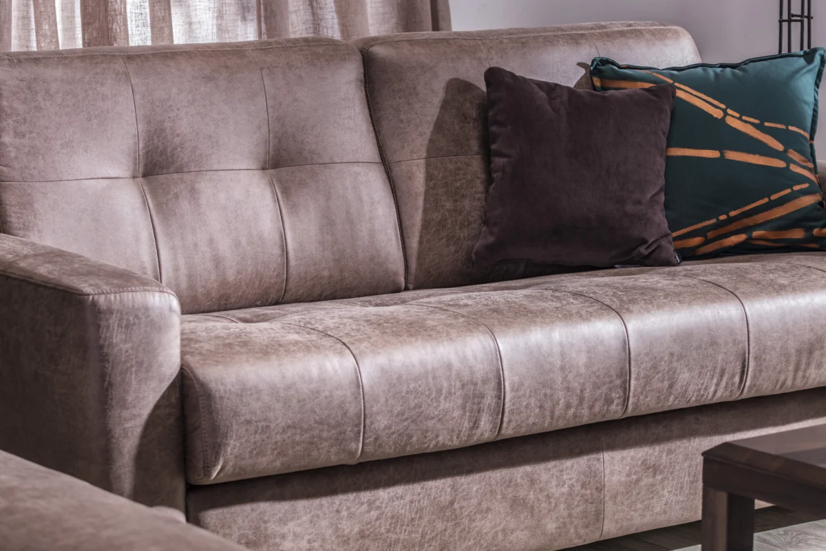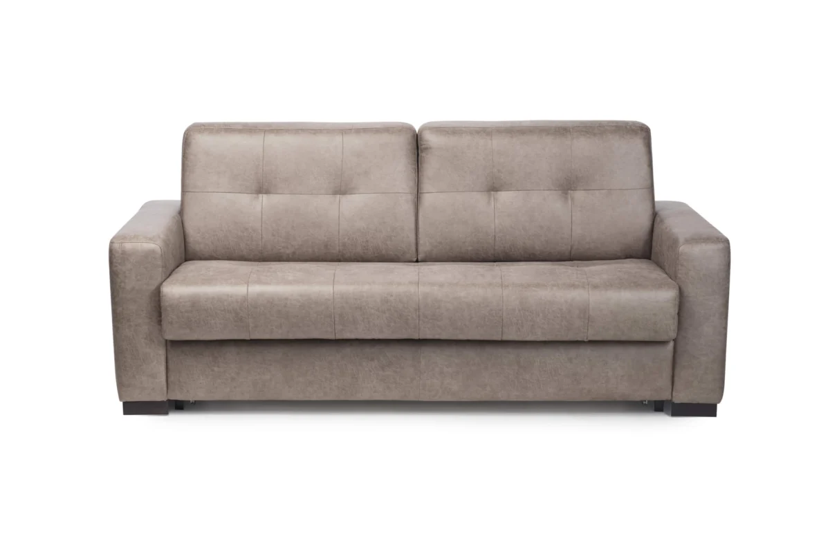 The De Marco three seater with mechanism provides the possibility of unfolding into a bed with a mattress for everyday comfortable sleep. The mattress measures 193 x 140 cm, height 12 cm is made of polyurethane foam and is an integral part of the model. In the unfolded position, the three seater has the following dimensions: 202 x 206 x 85 cm.