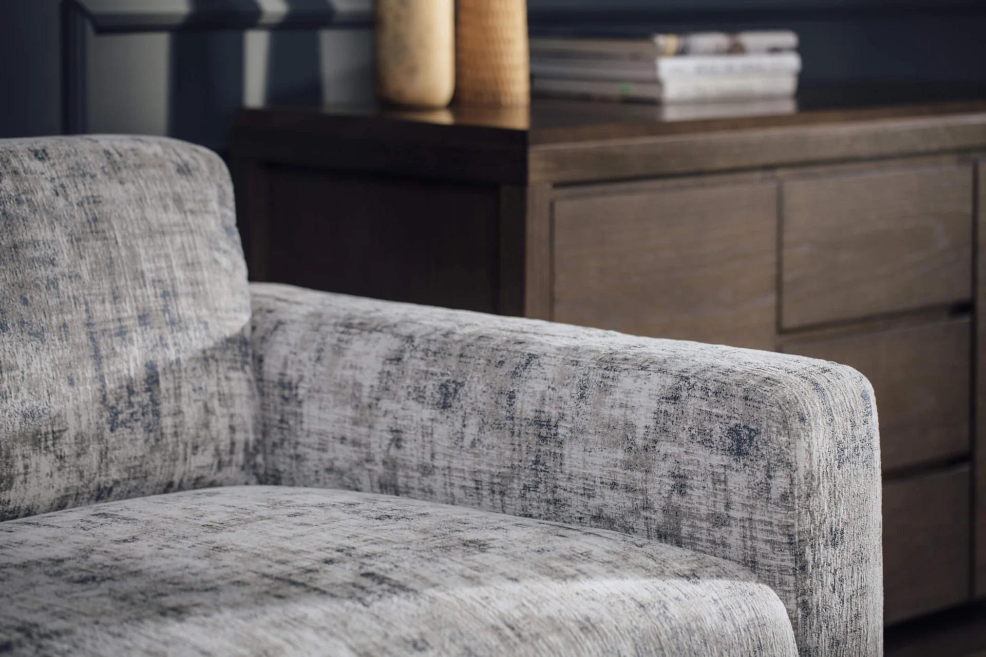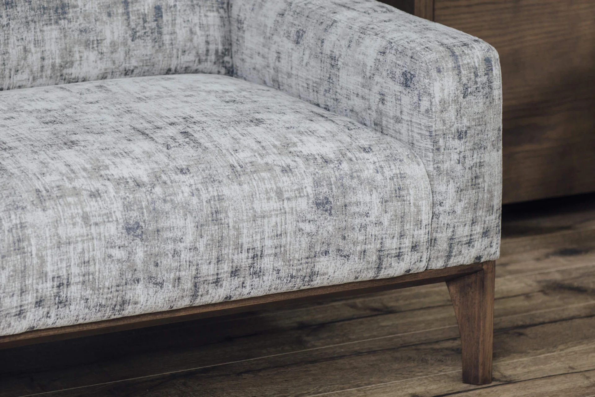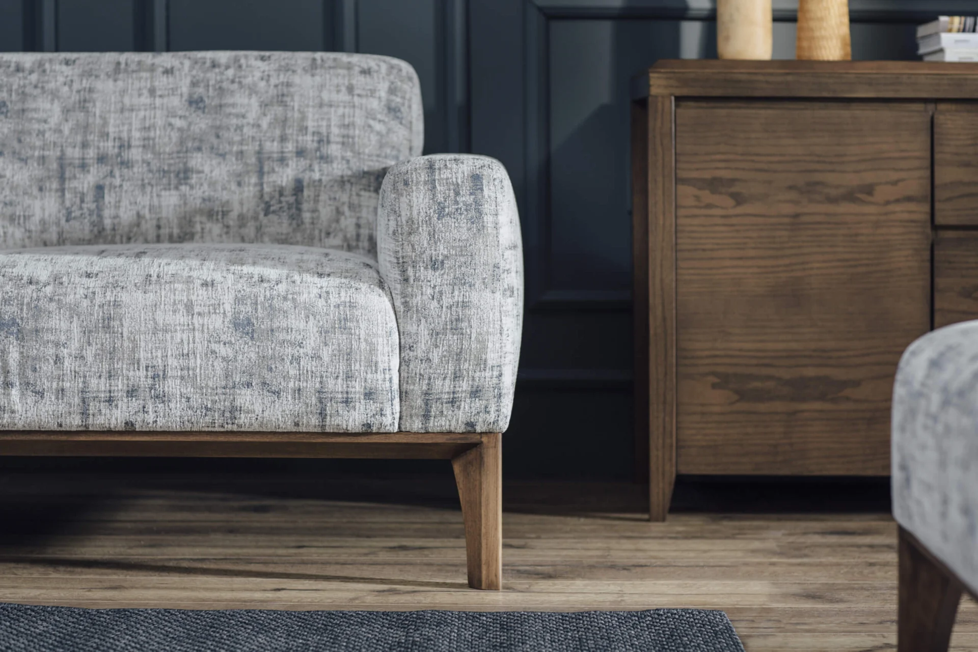 The construction of the Margo three seater is made of beech sawn timber, plywood and hardboard. The seats are filled with highly elastic HR foam, while standard polyurethane foams are used to fill the other parts. The frame with integrated solid wood legs fits perfectly into the design with unobtrusive and clean lines and is an ideal combination of wood and the finest materials.