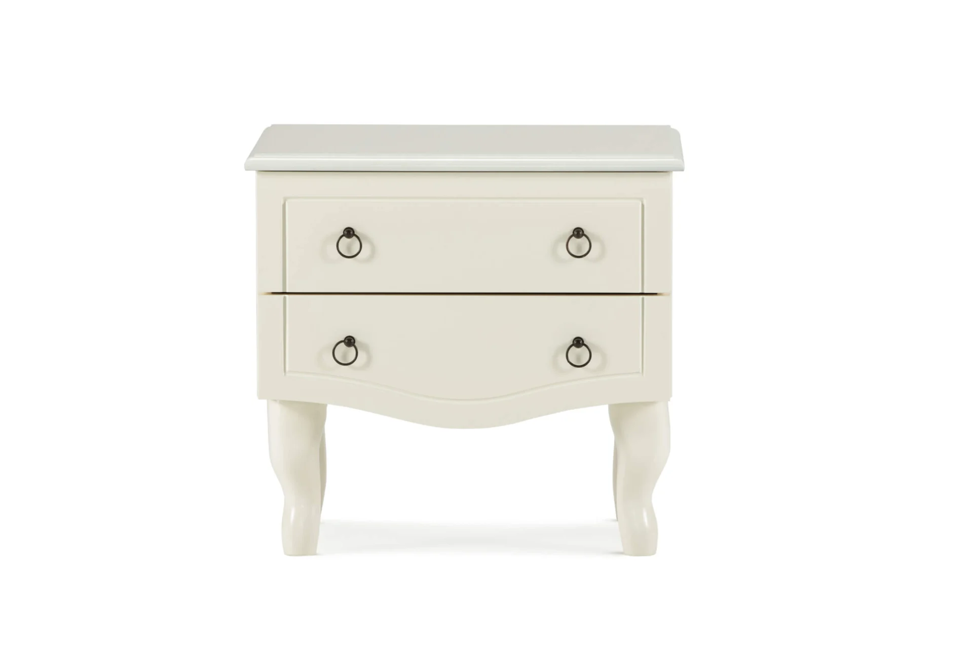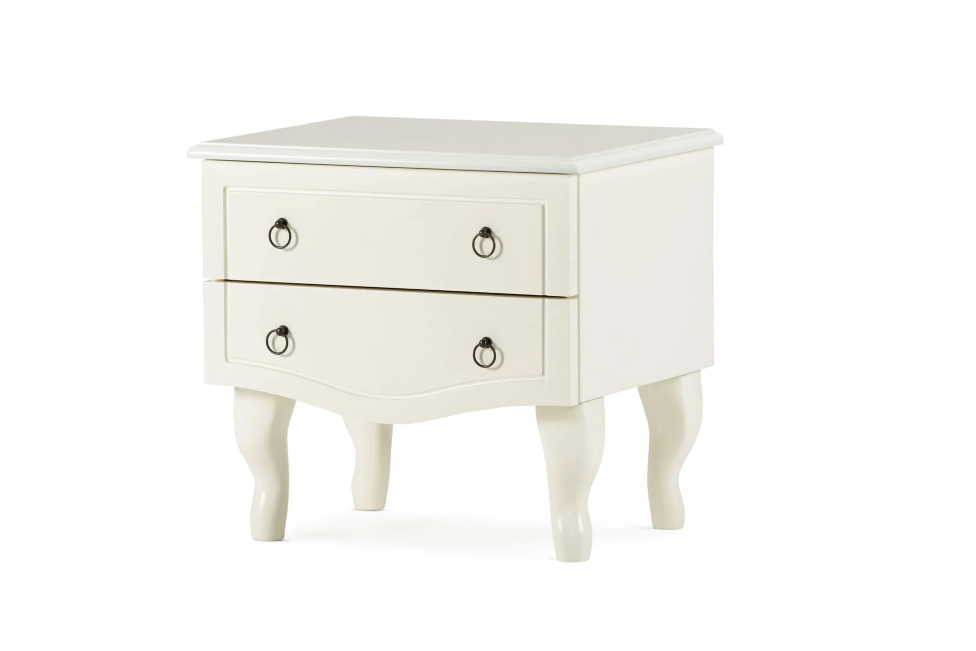 Glorija dečiji noćni stočić ima dve fioke sa bronzanim ručicama u obliku malih alki. Korpus je napravljen od bele oplemenjene iverice i medijapana. Prednji deo na fiokama je od belog oplemenjenog medijapana. Valovite noge su od punog bukovog drveta. Na elementima je završna obrada u boji slonove kosti, što ovaj noćni stočić čini prefinjenim.