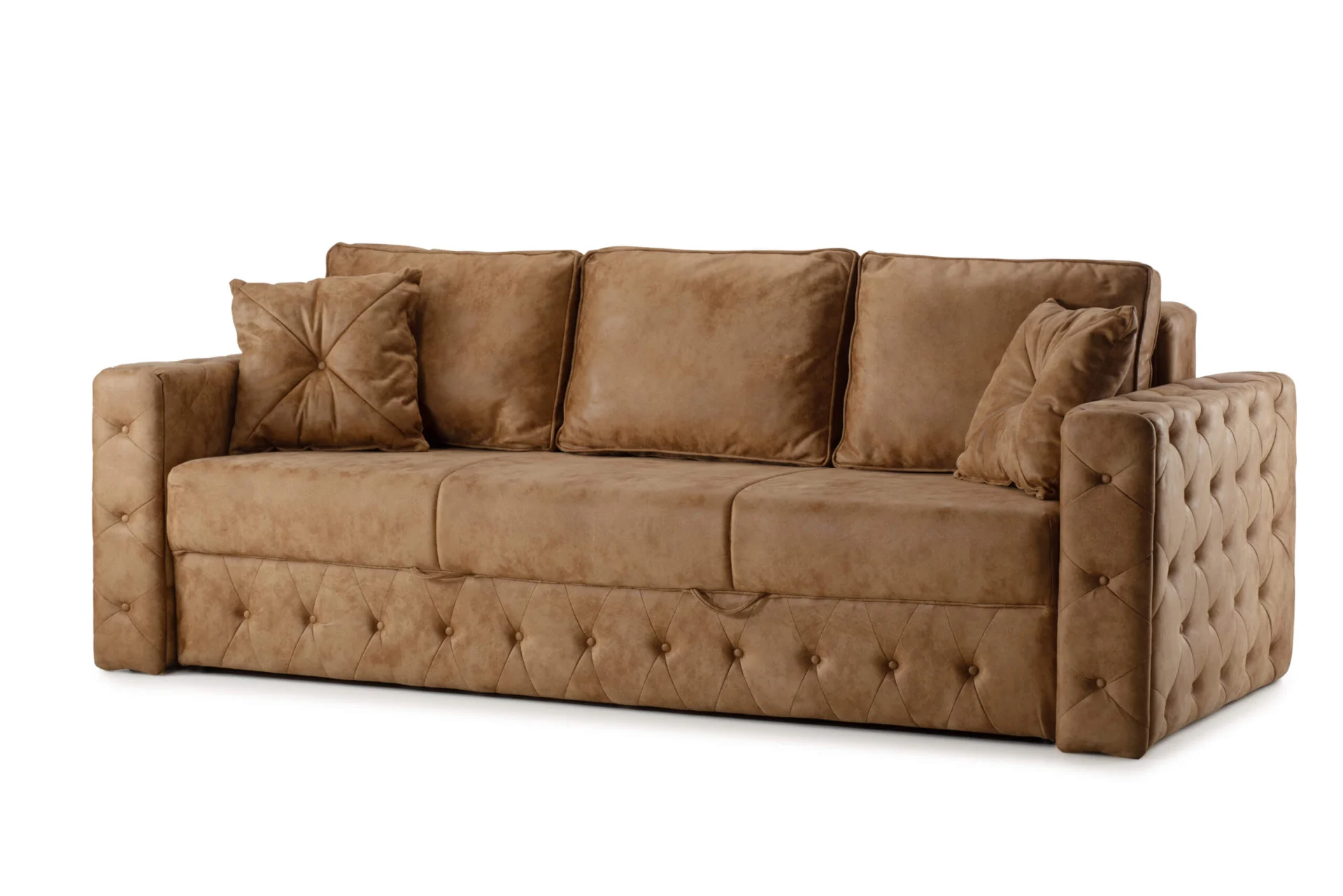 Konte kauč sa ukrasnim dugmadima šarmantno će ulepšati vaš enterijer. Tri velika jastuka, dva ukrasna jastučića i žičano jezgro u sedištu i naslonu pružiće vam odličnu udobnost. Zbog njegove udobnosti svi u vašem domu će ga obožavati.